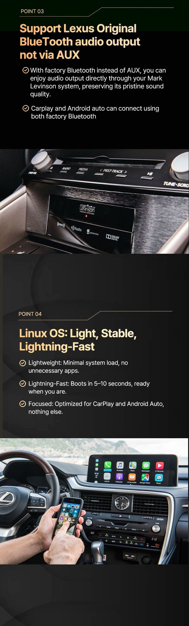Experience the ultimate driving convenience with our premium Linux-based monitor designed exclusively for Lexus models. Enjoy wireless CarPlay & Android Auto with a smooth, high-resolution display and a user-friendly interface.